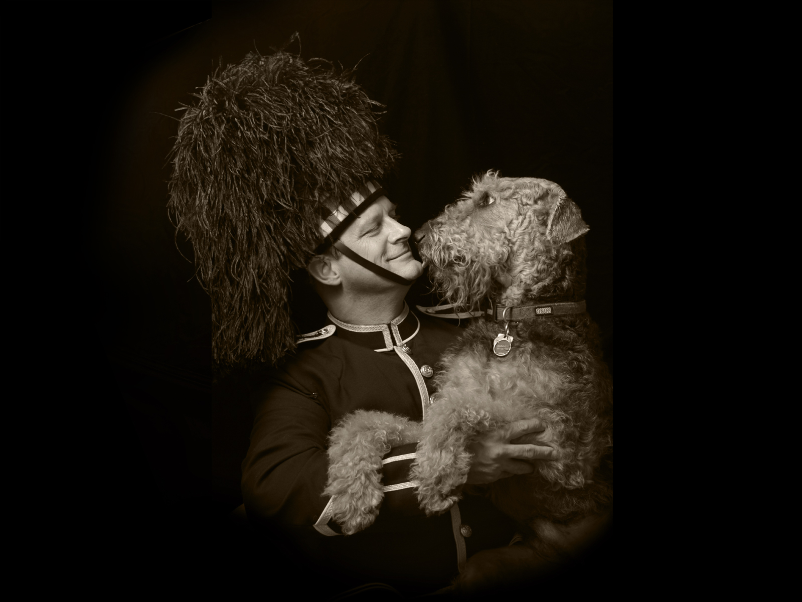 Bagpiper Dan Sheppard shares a moment with his Airedale Terrier, Guinness.